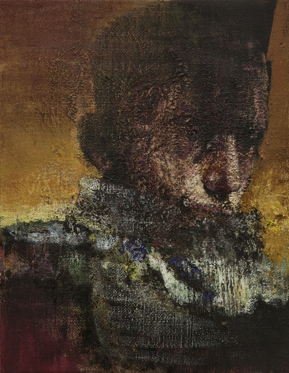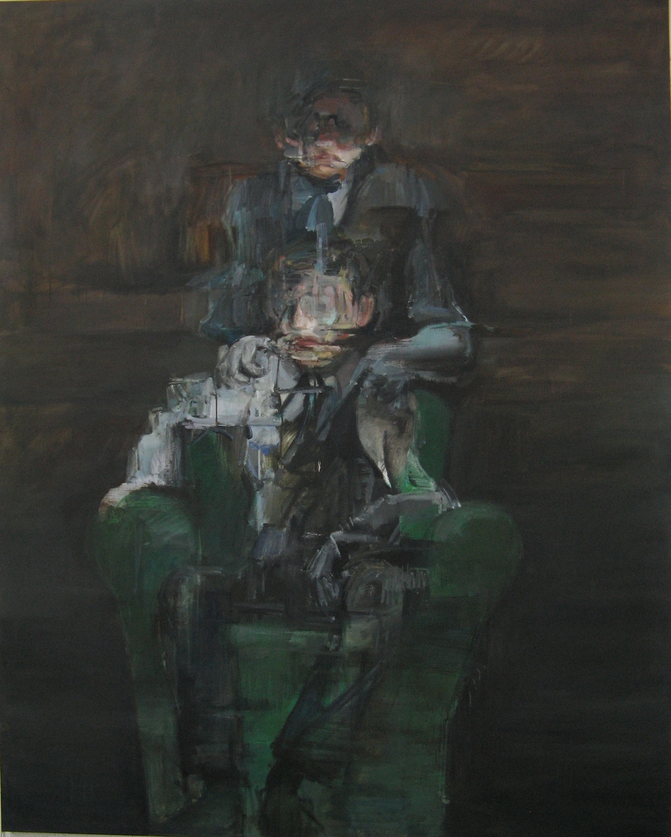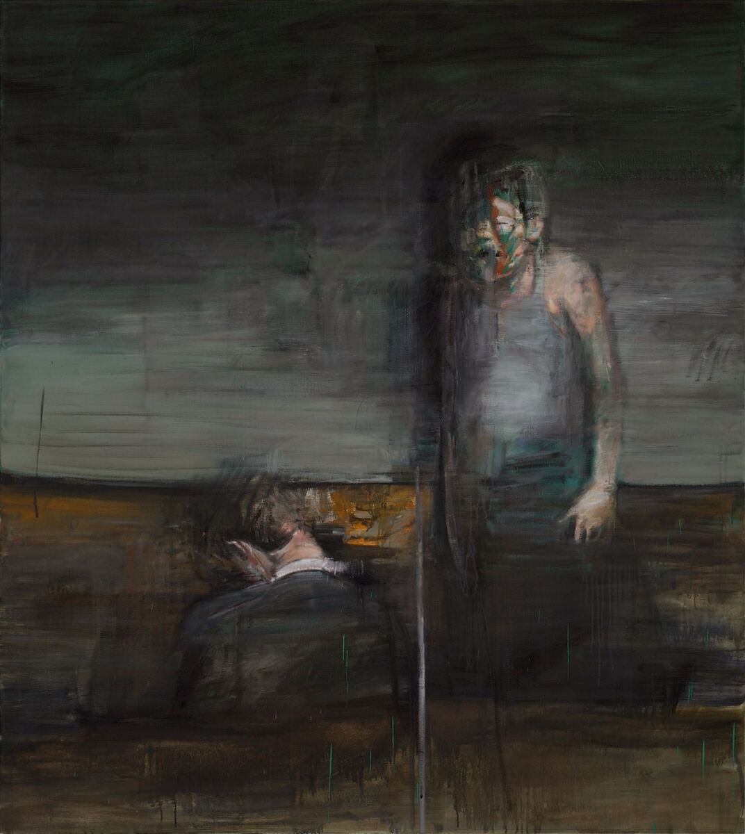 In seiner Ölmalerei beschäftigt sich Nikos Aslanidis fast ausschließlich mit dem Thema der menschlichen Figur. Es ist das klassische Genre des Porträts, das er in allen Facetten und Formaten umsetzt. Nur selten werden Situationen durch eine nähere Definition des Raums oder mittels angedeuteter Gegenstände näher bestimmt. Vielmehr bleiben die Figuren in einem Zustand des Ungefähren, die dem Betrachter ein Gefühl des Unbehaglichen verleihen.
