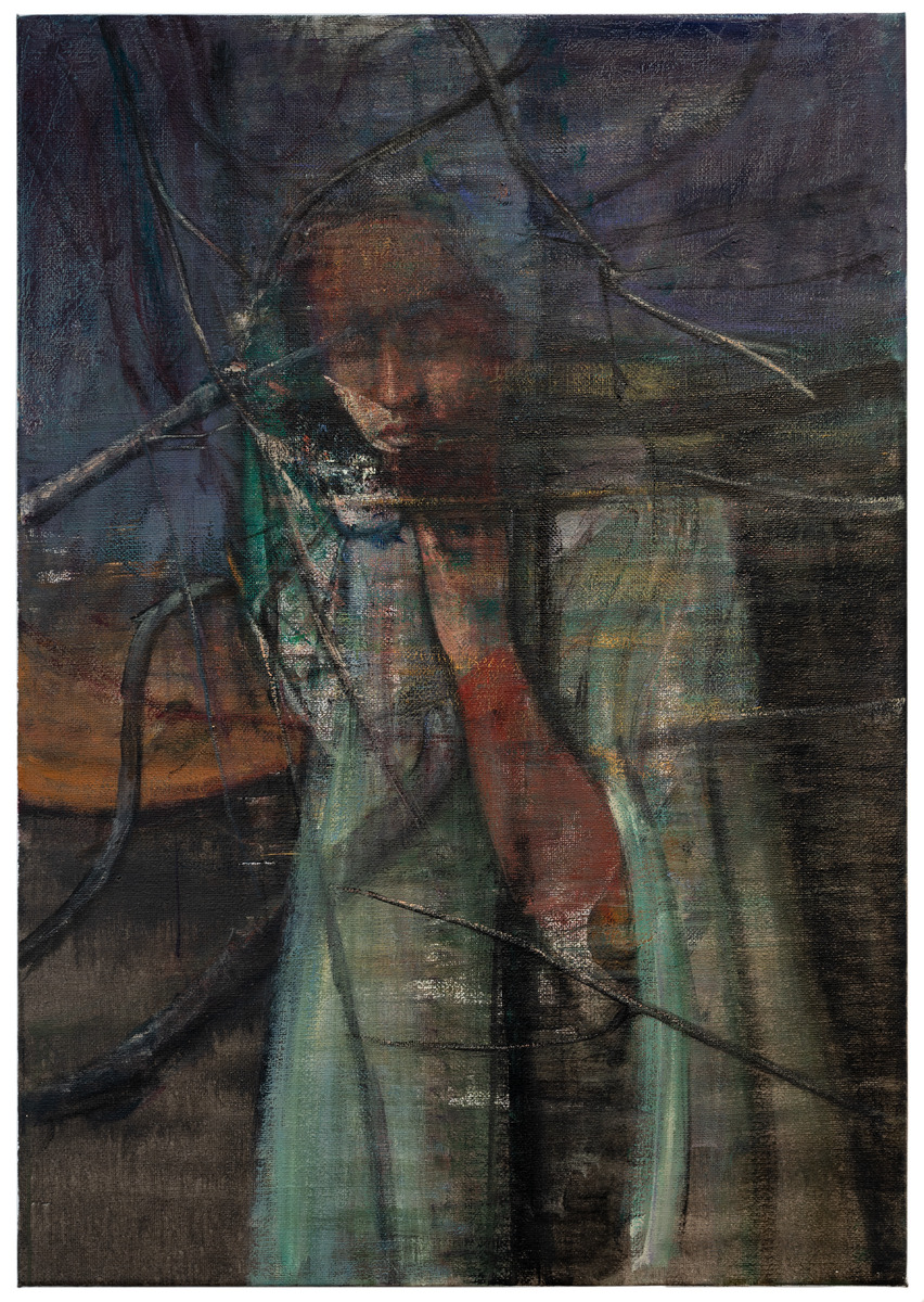 Der 1980 in Giannitsa, Griechenland, geborene Künstler verfolgt einen Prozess, der ihn eher intuitiv zum Werk führen lässt. Seine Porträts zeigen Figuren, die sich aus Bild- und Erinnerungsfetzen zusammensetzen. Charakterisierungen, Handlungen und Zuschreibungen werden immer wieder neu durchdacht, verworfen und überarbeitet. Dieser Prozess lässt sich in den Werken des Künstlers ablesen. Die Figuren erscheinen in einem uneindeutigen Zustand. Zeit, Bewegung und Raum fließen ineinander. Ob es sich um einen Zustand der Auflösung oder des Werdens handelt, bleibt unklar. Es ist dieses Geheimnis, mit dem Aslanidis die Betrachter seiner Bilder fesselt.