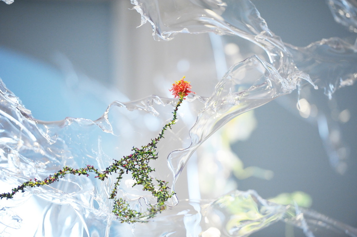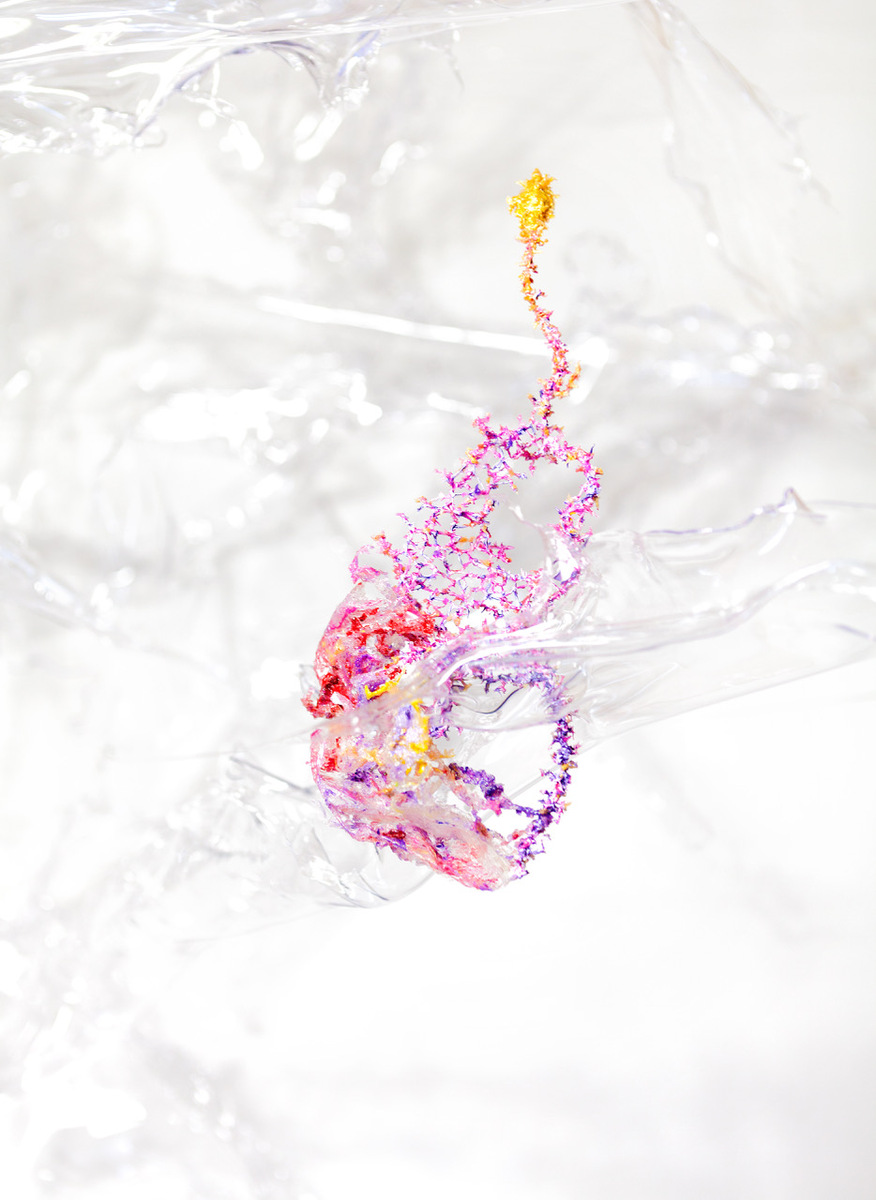 Der Titel der Ausstellung – auf Deutsch so viel wie: ,Unbezwingbares Glück nicht nur für Menschen, sondern für alles Leben, das empfindet‘ – erscheint einerseits als utopische Evokation und fasst doch gleichsam die Programmatik von Aljoschas künstlerischen Schaffens treffend zusammen. Es geht ihm um nicht weniger als den Entwurf einer Welt, in der Glück, Frieden und Respekt vor dem Anderen die Prinzipien des Zusammenlebens darstellen. Den Weg dorthin beschreibt er mit seiner Idee des 'Bioism' ­– künstlerisches Manifest und antizipierende Evolutionstheorie in einem. Seine Werke sieht er als erste Lebewesen einer neuen Gattung, die Hass und Gewalt überkommen hat. Bekannt ist Aljoscha vor allem für die raumfüllenden Installationen aus transluzentem Acrylglas, die sich in den Ausstellungsräumen ausbreiten wie die Urmasse des Neubeginns. Die Malerei jedoch stand am Anfang von Aljoschas künstlerischer Karriere, aus ihr heraus erst entwickelte er seine skulpturalen Arbeiten. Die 'p-landscapes' zeigen die Landschaft als Organismus, fantastische Gebilde, denen die holistische Vorstellung des 'Bioism' zugrunde liegen. Mit seinem plastischen Werk überführt er diese Gebilde in den Raum. Von kleinen Objekten aus Acryl, die sich wie Geflechte an Wänden und dem Interieur ausbreiten hin zu mittel- und großformatigen aus lackiertem Aluminium, die die Formensprache der Installationen aufgreifen.