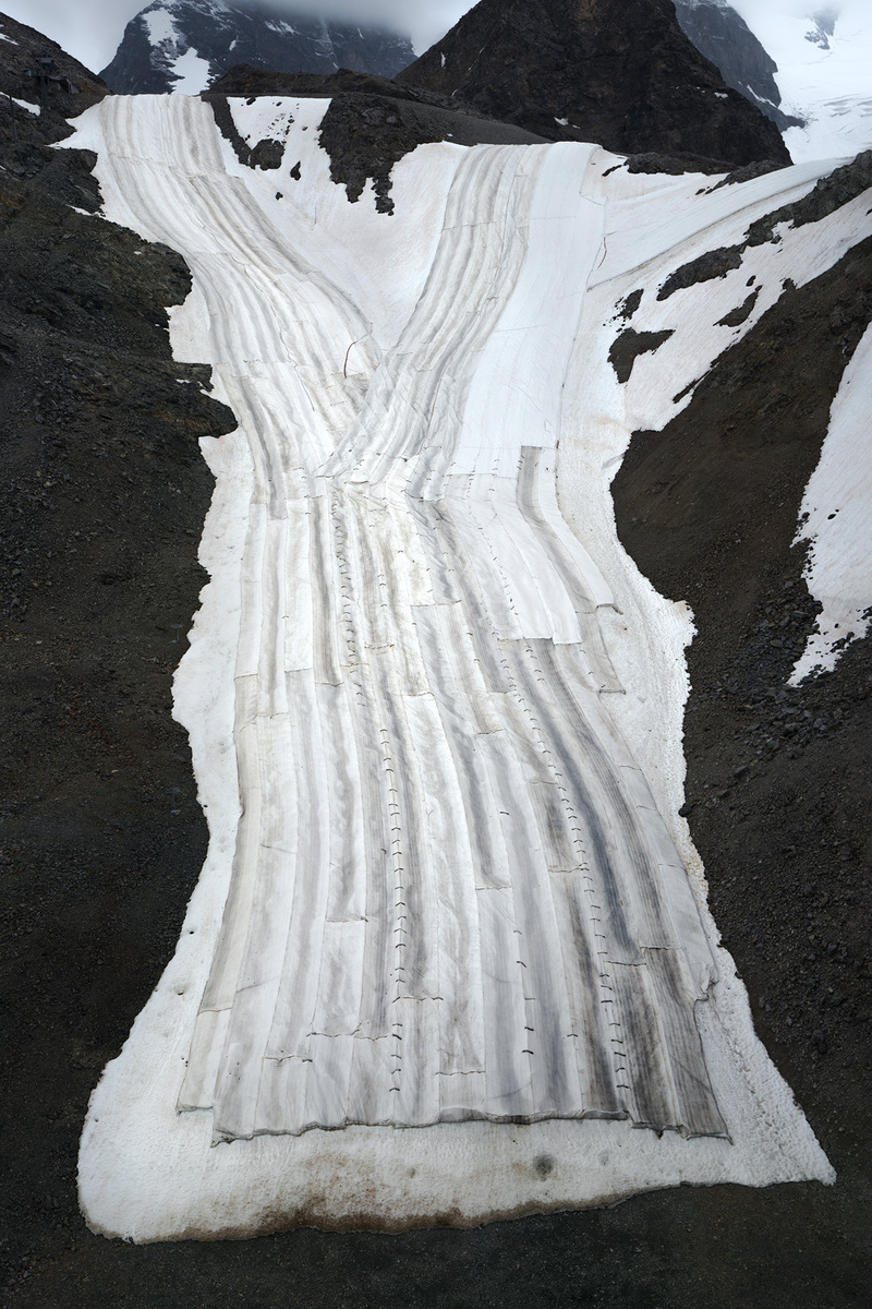 Der zweite Teil zeigt zeitgenössische Fotografien von Alpengletschern, die mit Isolierplanen abgedeckt sind – eine Maßnahme, die das Schmelzen der Gletscher bremsen soll. Dieser von Nathalie Dietschy (UNIL) zusammengestellte Korpus zeigt die Vielfalt der künstlerischen und wissenschaftlichen Perspektiven auf diese sich verändernden Landschaften und bietet eine eindrückliche Reflexion über die Herausforderungen ihres Schutzes.