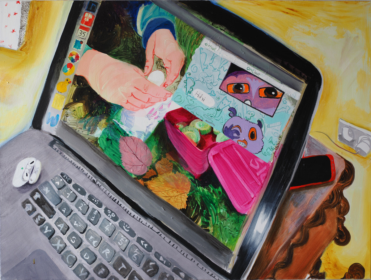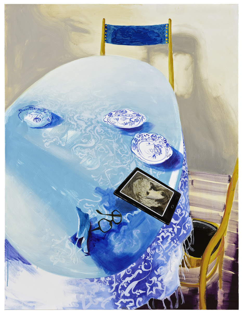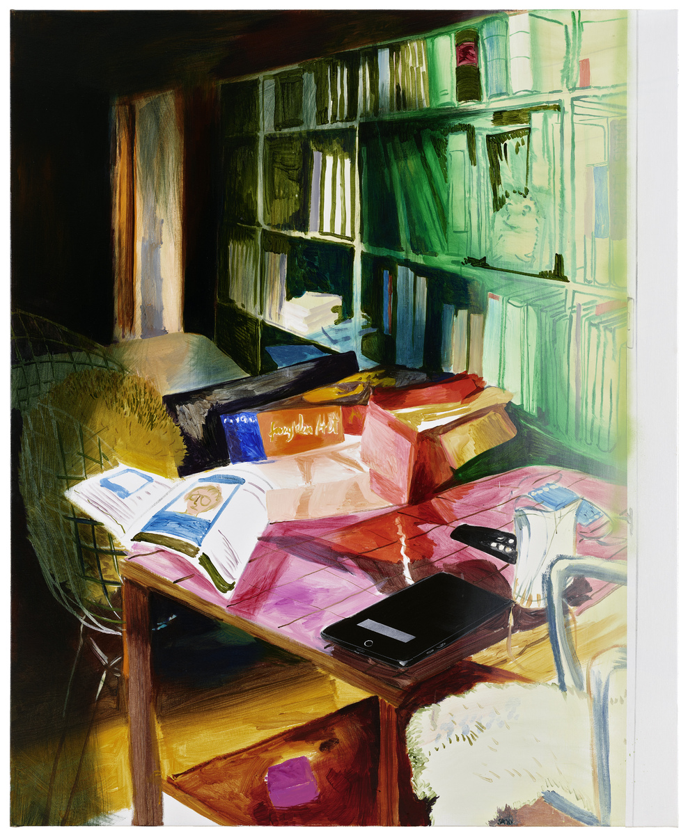 Kühn zeigt in den Arbeiten ihre nahe Umgebung: ihr Atelier, Orte ihres Zuhauses, Zimmer von Familienangehörigen… der Radius des persönlichen Erlebens ist zusammengeschnurrt auf die alltägliche, unmittelbare Umgebung. Es sind menschenleere Orte, was auch neu ist für ihr Werk. Die Präsenz des anderen, der menschliche Kontakt, wird nur angedeutet durch die Displays der elektronischen Geräte, die in dieser Hinsicht so wichtig geworden sind im letzten Jahr, oder persönliche Gegenstände, die so scheinen, als seien sie gerade noch benutzt worden.
