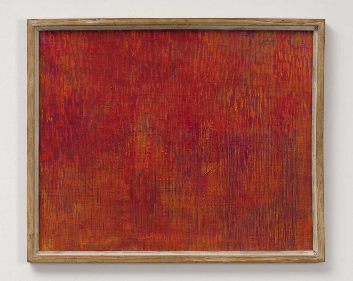 Busse schickte zwei rote Bilder in die Ausstellung, eines davon ein Nagelrelief, so viel lässt sich belegen. Ob diese Bilder nun in unserer Ausstellung zu sehen sind, lässt sich heute nicht mehr nachvollziehen. Was die Künstlerin jedoch mit ZERO verband, offenbart sich fast von selbst: Macks dynamische Strukturen, Pienes Raster, Ueckers Nägel – auf formal-ästhetische Fragen fand Busse ganz ähnliche Antworten. Diese Gleichzeitigkeit in der Entwicklung künstlerischer Strategien belegt Busses Anschluss an die damals aktuellen Diskurse. In Stuttgart, wo sie mit ihrem Mann, dem Maler Klaus Bendixen lebte, war sie Teil eines Netzwerkes aus bildenden Künstlern und Intellektuellen anderer Disziplinen, in dem Tendenzen in Kunst, Literatur und Philosophie diskutiert wurden und über den letztlich auch der Kontakt zu ZERO hergestellt wurde. In den 1950er Jahren konnte sie während mehrerer Aufenthalte in Paris die europäische Moderne hautnah studieren. Besonders Fernand Légers Formgebung beeindruckte die junge Künstlerin. So entstehen in den 1950er Jahren Bilder mit Figurengruppen, deren Form sie, zunächst noch stark von Léger beeinflusst, im Laufe der Zeit immer weiter aufzulösen begann. Ihr Interesse verschob sich dabei weg von den Figuren selbst hin zu deren Gruppierungen, weg vom Einzelnen hin zur Masse. In diesem Prozess lösten sich die Figuren schließlich in Punkte, Raster, Striche oder eben Nägel auf. Im Gegensatz zu den ZERO Künstlern, die die Abstraktion eher von einem technisch-formalen Standpunkt aus entwickelten, leitete Busse die Ungegenständlichkeit von der Figur ab und verlor nie ganz den Bezug zur Repräsentation (wenngleich viele Bilder unbetitelt blieben, belegen dies gerade frühe abstrakte Arbeiten mit eindeutigen Titeln wie ‚Badende‘, ‚Arena‘ oder ‚Markusplatz‘). Das gemeinsame Interesse galt aber eindeutig der Reduktion der Figuration zugunsten von Farbe und Struktur und den damit entwickelten neuen Möglichkeiten von Wahrnehmung bestimmter Phänomene.