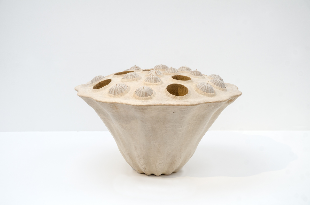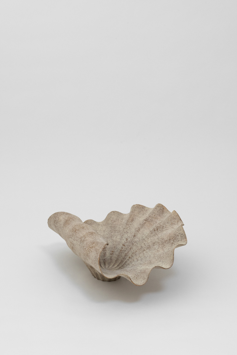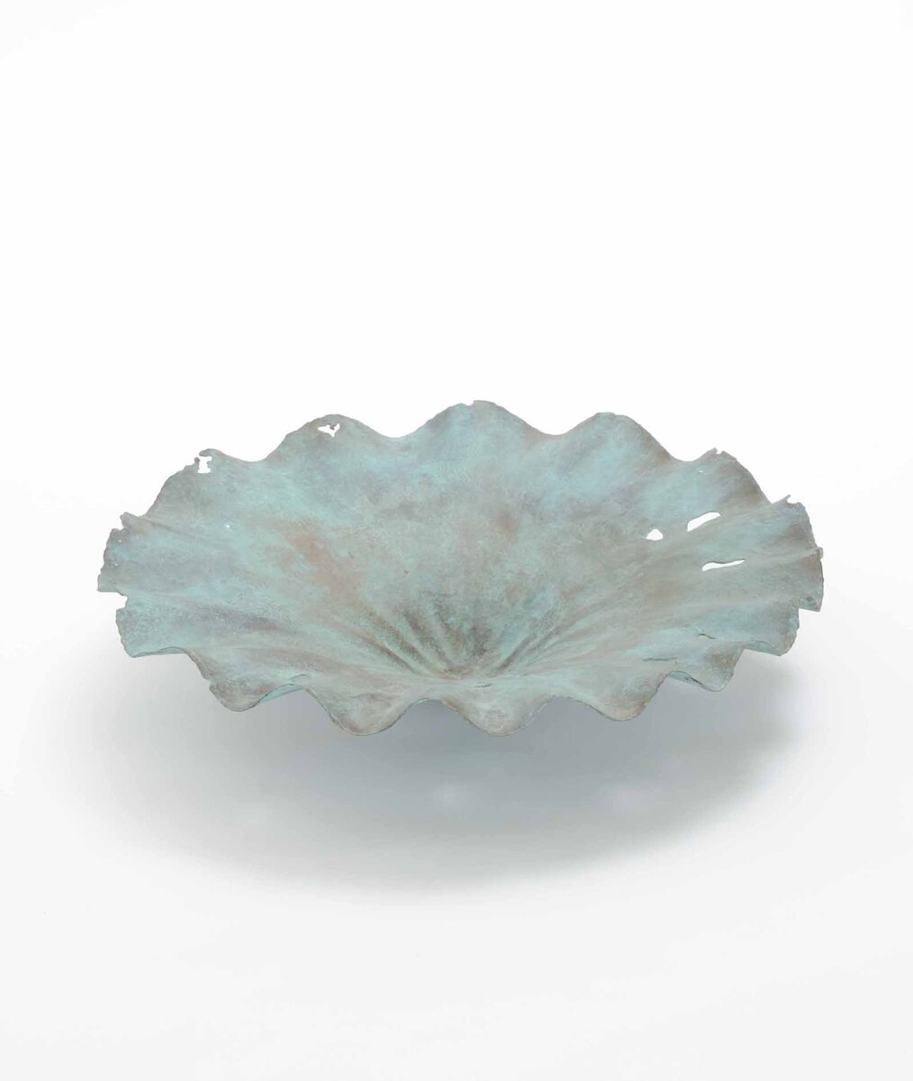 The lotus leaf is a central motif in his bronze sculptures, as well as in his delicate works on handmade paper. Lotus leaves, blossoms, and seeds inspire its formal vocabulary. The lotus is a symbol of Buddhism in terms of content and form, which stands for the cycle of birth and death as well as for the transmigration of souls. But in other Asian religions too, the leaf represents elegance, purity, and grace. Nishimura is by no means interested in reproducing the lotus leaf as a purely decorative object, but enters into a spiritual semiotics. On the occasion of his large exhibition in the Museum of Modern Art Kamakura, he explained »I carry the lotus inside me. It often seizes my thoughts as a memory. In an abstract sense, I am in an intense relationship with it and so it is a part of me«.
