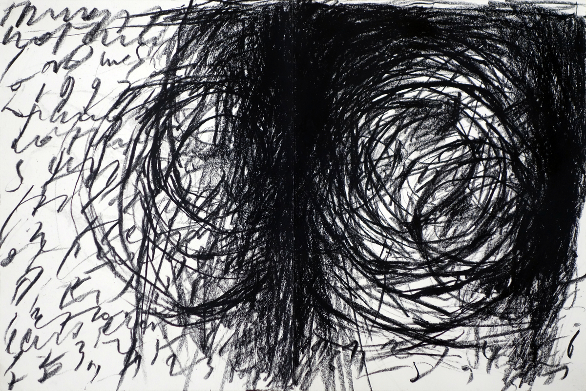 At the centre of the exhibition are sculptures and objects from the past six years. The works Ur-Haus II / extension and collapse and Aggregat I / Element XIII - XVI evoke architectural models. Indeed, Palavrakis was trained as an architect, and he assembled these objects from fragments of existing architectures. The cool elegance and grandeur of the forms initially conceal the impossibility of their construction which defies the laws of nature. The mirrored gas bottle of Module 94 and the mysterious apparatus in Module 14 defy our understanding by leaving us uncertain as to their respective functions. The gas bottle in a glass case arouses our desire, but it never reveals why it must be protected or whether it brings misfortune or a blessing once opened. Likewise, the equipment of Module 14 betrays just as little about the nature of the system that it seems to support. The Fifth Element after Kazimir Malevich invokes a key moment in modern art, but the viewer is left to consummate it in their imagination. The magic square of light that the fluorescent tubes could produce remains segmented. What power would flow from it if it were whole? The series of drawings from 1997 functions as a chaotic counterpoint to the technical perfection of the objects. Rows of characters, letters, and numbers on torn-out sketchbook pages seem like a cryptograph that uses known characters without revealing its contents. Thick layers of graphite cover them, sometimes partially, sometimes almost filling the pages. Any lingering possibility of deciphering the secret is forever lost under the impenetrable blacks.
