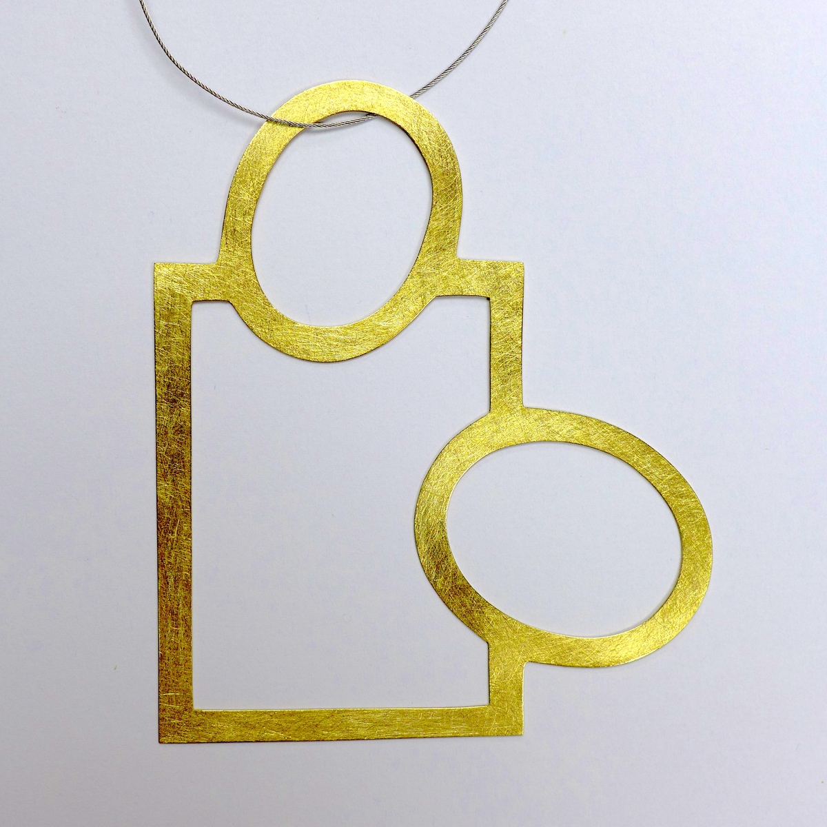 The artist and trained goldsmith Dorothea Förster (born 1954) works at the intersections of applied and fine arts. The jewellery and wall objects that form the focus of the exhibition Facetten follow a clear formal language derived from the basic shapes of the square and the circle. In the process of creating, Dorothea Förster uses paper cut-outs, negative and positive forms, which she constantly recombines, almost seeming to declinate them. Her objects (made of gold and silver for the jewellery and laser-cut, powder-coated aluminium for the wall objects) retain the irregularities and blurring resulting from the paper cut-outs. Geometric rigour gives way to a playful, sketch-like lightness. This corresponds with the fact that Dorothea Förster does not develop her formal language from conceptual considerations. She draws inspiration from a collection of photos, newspaper clippings, her own sketches and notes, and writings. It is a process in which the artist proceeds less in a planned and deliberate manner; associative and playful, the process is more like a creative frenzy. This process is documented by paper collages, sketches and documents, which will also be on display in the exhibition. With these, the exhibition space becomes a space for experiencing artistic and creative development, a desire of wanting to do and discover. In her objects, she condenses her experiences and insights from these processes, abstracting, condensing, separating the insignificant from the essential. At the end of this long journey remains a meaning, something lasting, the one sign, the essence.